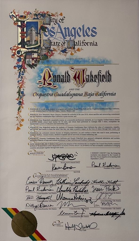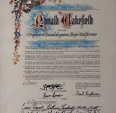 On September 8th, 2023, Ron Wakefield and Orquesta Guadalupana were honored by the Los Angeles City Council for their exceptional work.
